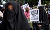 REPUBLIKA.CO.ID, BANDUNG -- Sejumlah massa yang tergabung dalam Masyarakat Cinta Rasulullah melakukan Aksi Damai Bela Nabi di depan Gedung Sate, Jalan Diponegoro, Kota Bandung, Jumat (30/10).