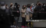 Sejumlah warga melihat ke arah gereja Notre Dame, Nice, Perancis Selatan, Kamis (29/10). (FOTO : AP/Daniel Cole)