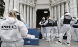 Petugas forensik memeriksa tempat kejadian perkara di Gereja Notre Dame, Nice, Perancis Selatan, Kamis (29/10). (FOTO : Pool ReutersEric Gaillard/Pool via AP)