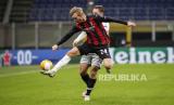 Simon Kjaer (depan) berebut bola dengan Lukas Julis (belakang) pada laga Liga Europa Group H antara AC Milan melawan Sparta Praha di San Siro Stadium, Milan, Italia. (FOTO : AP/Antonio Calanni)