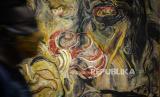 Pengunjung memerhatikan karya maestro lukis Affandi di Galeri Nasional Indonesia, Jakarta, Jumat (30/10). Pameran bertajuk Imersif Affandi Alam, Ruang, Manusia tersebut digelar secara daring dan luring dalam rangkaian acara Pekan Kebudayaan Nasional (PKN) 2020 yang berlangsung hingga 25 November 2020. (FOTO : Republika/Thoudy Badai)