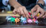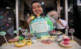 Chef Pipit Permatasari menghias kue ulang tahun bermotif virus corona di Palembang, Sumatera Selatan, Jumat (30/10). Kue ulang tahun yang menjadi penanda zaman pandemi COVID-19 itu dijual dengan harga antara Rp450 ribu hingga Rp1,5 juta per buah. (FOTO : Antara/Nova Wahyudi)