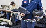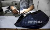 REPUBLIKA.CO.ID, BANDUNG -- Pekerja menyelesaikan pembuatan tas model waistbag di rumah produksi Newlight Bags, Jalan Pesantren, Cibabat, Kota Cimahi, Jumat (30/10).