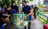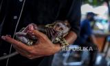 Warga membawa musang peliharaannya untuk disuntik vaksin anti rabies di kawasan Tebet, Jakarta, Sabtu (31/10). Pemberian vaksin gratis tersebut untuk menghindari dan mengantisipasi penyebaran penyakit rabies kepada hewan peliharaan. (FOTO : Republika/Putra M. Akbar)