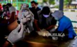 REPUBLIKA.CO.ID, JAKARTA -- Warga membawa anjing peliharaannya untuk disuntik vaksin anti rabies di kawasan Tebet, Jakarta, Sabtu (31/10). Pemberian vaksin gratis tersebut untuk menghindari dan mengantisipasi penyebaran penyakit rabies kepada hewan peliharaan.