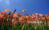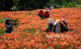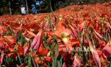 Ribuan bunga Amarilis mekar di Taman Bunga Amarilis Sukadi, Pathuk, Gunungkidul, Yogyakarta, Ahad (1/11). Wisatawan bisa berswafoto atau berjalan-jalan di tengah kebun bunga Amarilis yang mekar. Di tanah 5 hektare Sukadi membudidayakan bunga Amarilis, dan bunga ini mekar setahun sekali. Dengan tiket masuk Rp 10 ribu pengunjung bisa memasuki taman berwarna merah. (FOTO : Wihdan Hidayat / Republika)