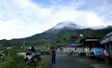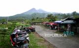 Gunung Merapi terlihat cukup jelas dari kawasan Klangon, Sleman, Yogyakarta, Ahad (1/11). Gunung Merapi dalam sepekan terakhir mengalami peningkatan aktivitas cukup signifikan. Sehingga kegiatan pendakian ditutup untuk sementara. Hingga saat ini BPPTKG mempertahankan status Gunung Merapi pada level II atau waspada. (FOTO : Wihdan Hidayat / Republika)