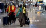 REPUBLIKA.CO.ID, TANGERANG -- Calon Jamaah umroh berjalan menuju pintu keberangkatan di Terminal 3 Bandara Soekarno Hatta, Tangerang, Banten, Ahad (1/11).