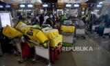 Ratusan jamaah diberangkatkan ke tanah suci pada Ahad (1/11). Hal ini merupakan pemberangkatan perdana setelah umroh ditutup pada februari akibat pandemi Covid-19.