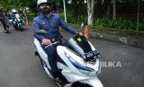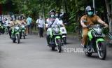 REPUBLIKA.CO.ID, BANDUNG -- Gubernur Jawa Barat Ridwan Kamil mencoba motor listrik saat peringatan Hari Listrik Nasional Tingkat Provinsi Jawa Barat, di Parkir Timur Gedung Sate, Kota Bandung, Senin (2/11).