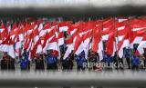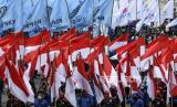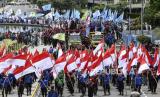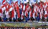 REPUBLIKA.CO.ID, JAKARTA -- Massa aksi dari berbagai elemen buruh berunjuk rasa di Jalan Medan Merdeka Barat, Jakarta, Senin (2/11/2020).