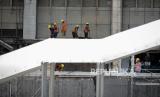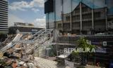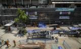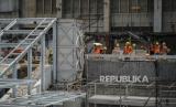 REPUBLIKA.CO.ID, JAKARTA -- Pekerja menyelesaikan proyek renovasi gedung pusat perbelanjaan Sarinah di Jakarta, Selasa (3/11).