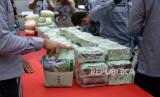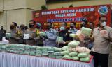 REPUBLIKA.CO.ID, BANDA ACEH -- Personil Polda Aceh menata barang bukti tindak kejahatan narkotika jenis sabu dan pil ekstasi hasil penindakan saat gelar kasus di Banda Aceh, Aceh, Selasa (3/10/2020).