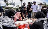 Sejumlah massa dari berbagai organisasi islam berbagi makanan saat Rapat Akbar Umat Islam Jabar di depan Gedung Sate, Jalan Diponegoro, Kota Bandung, Rabu (4/11). Rapat akbar tersebut dalam rangka persiapan penyambutan Imam Besar Front Pembela Islam (FPI) Muhammad Rizieq Shihab yang rencananya akan tiba di Indonesia pada 10 November mendatang. (FOTO : ABDAN SYAKURA/REPUBLIKA)
