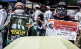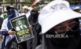 Sejumlah massa dari berbagai organisasi islam menggelar Rapat Akbar Umat Islam Jabar di depan Gedung Sate, Jalan Diponegoro, Kota Bandung, Rabu (4/11). Rapat akbar tersebut dalam rangka persiapan penyambutan Imam Besar Front Pembela Islam (FPI) Muhammad Rizieq Shihab yang rencananya akan tiba di Indonesia pada 10 November mendatang. (FOTO : ABDAN SYAKURA/REPUBLIKA)