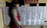 Berkas Daftar Pemilih Tatap (DPT) Pemilihan Walikota dan Wakil Walikota Depok terpasang di Kelurahan Abadijaya, Depok, Jawa Barat, Rabu (4/11). Komisi Pemilihan Umum (KPU) Kota Depok menetapkan jumlah Daftar Pemilih Tetap (DPT) untuk pilkada Kota Depok 2020 berjumlah 1.229.362 pemilih.Prayogi/Republika. (FOTO : Prayogi/Republika)