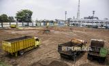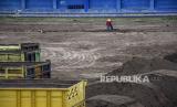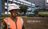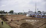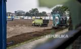 Pekerja menggunakan alat berat menyelesaikan proyek renovasi Stadion Sidolig, Kota Bandung, Kamis (5/11). Kementerian PUPR menargetkan proyek renovasi Stadion Sidolig yang menjadi salah satu stadion tempat latihan Piala Dunia U-20 rampung pada Maret 2021. (FOTO : ABDAN SYAKURA/REPUBLIKA)