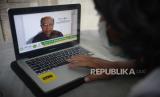 Dalam acara yang disiarkan langsung melalui media sosial tersebut membahas tentang membuka potensi zakat untuk mngurangi angka kemiskinan dan Covid-19. Republika/Thoudy Badai