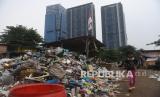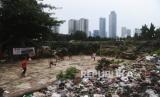 Seorang anak melintasi tumpukan sampah di Kampung Gasong, Menteng Pulo, Jakarta, Kamis (5/11/2020). Badan Pusat Statistik (BPS) mencatat ekonomi Indonesia pada kuartal III-2020 minus 3,49 persen yang memastikan Indonesia masuk dalam jurang resesi. (FOTO : ANTARA/Akbar Nugroho Gumay)