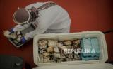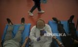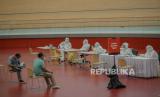 Karyawan menjalani rapid test dan donor darah di Jakarta Internasional Velodrom Rawamangun, Jakarta, Jumat (6/11). Pelaksanaan rapid test dan donor darah tersebut diadakan oleh pihak PT Jakarta Propertindo (Jakpro) bekerjasama dengan Palang Merah Indonesia (PMI) dalam rangka mendukung program Bulan Dana PMI. Republika/Thoudy Badai (FOTO : Republika/Thoudy Badai)