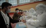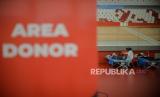 Karyawan menjalani rapid test dan donor darah di Jakarta Internasional Velodrom Rawamangun, Jakarta, Jumat (6/11). Pelaksanaan rapid test dan donor darah tersebut diadakan oleh pihak PT Jakarta Propertindo (Jakpro) bekerjasama dengan Palang Merah Indonesia (PMI) dalam rangka mendukung program Bulan Dana PMI. (FOTO : Republika/Thoudy Badai)
