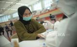 REPUBLIKA.CO.ID, JAKARTA -- Karyawan menjalani rapid test dan donor darah di Jakarta Internasional Velodrom Rawamangun, Jakarta, Jumat (6/11).