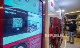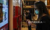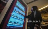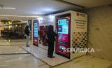 Pengunjung membeli masker yang dijual pada vending machine di Senayan City, Jakarta, Jumat (6/11). Vending machine masker yang menyediakan 18 desain masker kain hasil kolaborasi seniman, UMKM dan sejumlah selebritas tanah air itu diharapkan dapat meningkatkan kesadaran dalam memakai masker sebagai kebutuhan esensial pada masa pandemi covid-19. (FOTO : Republika/Putra M. Akbar)