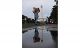 Refleksi atau pantulan puncak Monas di Jakarta, Jumat (6/11/2020). Proses sertifikasi kawasan monas yang sedang berlangsung saat ini masih belum menemui kesepakatan apakah nantinya akan dimiliki oleh Pemprov DKI Jakarta atau Kemensetneg. (FOTO : Antara/Dhemas Reviyanto)