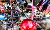 Calon pembeli memilih helm di sentra penjualan helm Kota Lhokseumawe, Aceh, Jumat (5/11/2020). Para pedagang menyatakan, permintaan helm Standar Nasional Indonesia (SNI) meningkat tajam hingga 80 persen dari biasanya, menyusul tingginya permintaan di tengah Operasi Zebra 2020. (FOTO : ANTARA/Rahmad)