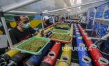 Warga merawat sayuran hidroponik di kawasan Kampung Sehat, Utan Kayu Selatan, Jakarta, Sabtu (7/11/2020). Kampung Sehat yang diisi dengan berbagai tanaman sayur dan kolam ikan tersebut diharapkan menjadi contoh bagi wilayah lain agar dapat memelihara lingkungan yang bersih sehingga masyarakat tetap sehat dan terbebas dari COVID-19. (FOTO : Antara/Dhemas Reviyanto)