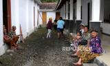 Lansia beraktivitas di barak pengungsian lapangan Balai Desa Glagaharjo, Cangkringan, Sleman, Yogyakarta, Ahad (8/11). Sekitar 80an bilik pengungsi sudah disiapkan untuk penduduk rentan Desa Kalitengah Lor. Sebanyak 164 jiwa sudah mengisi barak pengungsian, dan untuk cadangan sudah disiapkan di SD Muhammadiyah Cepitsari. Penduduk rentan sudah mulai dievakuasi menuju pengungsian sejak kenaikan status Siaga Gunung Merapi. (FOTO : Wihdan Hidayat / Republika)