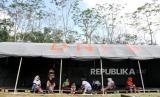 Pengungsi beraktivitas di barak pengungsian lapangan Balai Desa Glagaharjo, Cangkringan, Sleman, Yogyakarta, Ahad (8/11). Sekitar 80an bilik pengungsi sudah disiapkan untuk penduduk rentan Desa Kalitengah Lor. Sebanyak 164 jiwa sudah mengisi barak pengungsian, dan untuk cadangan sudah disiapkan di SD Muhammadiyah Cepitsari. Penduduk rentan sudah mulai dievakuasi menuju pengungsian sejak kenaikan status Siaga Gunung Merapi. (FOTO : Wihdan Hidayat / Republika)