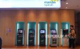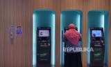 Seorang nasabah bertransaksi di galeri atm kantor Cabang Mandiri Syariah Thamrin, Jakarta, akhir pekan lalu. PT Bank Syariah Mandiri (Mandiri Syariah) berhasil meraih laba melampaui Rp1,07 triliun, naik signifikan 22,66% yoy per September 2020. Serta mencatatkan dana pihak ketiga (DPK) di angka Rp106,12 triliun, naik 17,26% dan menjadikan nilai aset Mandiri Syariah mencapai Rp119,43 triliun per September 2020. (FOTO : Yogi Ardhi/Republika)