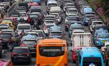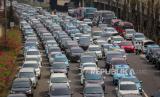 Sejumlah kendaraan terjebak macet di Tol Bandara Soekarno Hatta (Soetta), Tangerang, Banten, Selasa (10/11/2020). Kemacetan tersebut diakibatkan penumpukan massa di daerah Tol Bandara saat penyambutan kedatangan Habib Rizieq Shihab (HRS). (FOTO : Antara/Fauzan)