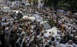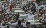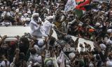 REPUBLIKA.CO.ID, JAKARTA -- Imam Besar Front Pembela Islam (FPI) Habib Rizieq Shihab menyapa massa saat tiba di kawasan Petamburan, Jakarta, Selasa (10/11). Habib Rizieq Shihab kembali ke tanah air setelah berada di Arab Saudi selama tiga setengah tahun.