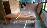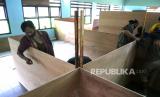 Gedung tempat pembangunan bilik pengungsi di Barak Pengungsian Wonokerto, Sleman, Yogyakarta, Senin (10/11). Sekitar 20 bilik berukuran 2x2 meter sedang dibangun untuk persiapan pengungsi kelompok rentan. Selain bilik, juga sudah disiapkan tenda untuk pengungsi tambahan. Namun, saat ini belum ada warga yang mengisi barak pengungsian Wonokerto. (FOTO : Wihdan Hidayat / Republika)
