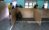 REPUBLIKA.CO.ID, SLEMAN -- Warga membangun bilik pengungsi di Barak Pengungsian Wonokerto, Sleman, Yogyakarta, Senin (10/11). Sekitar 20 bilik berukuran 2x2 meter sedang dibangun untuk persiapan pengungsi kelompok rentan. Selain bilik, juga sudah disiapkan tenda untuk pengungsi tambahan. Namun, saat ini belum ada warga yang mengisi barak pengungsian Wonokerto.