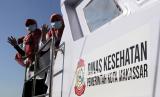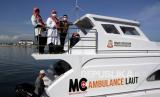 REPUBLIKA.CO.ID, MAKASSAR -- Sejumlah tenaga medis berada di atas ambulans laut saat pemberangkatan tim medis ke pulau-pulau kecil di perairan Pantai Losari, Makassar, Sulawesi Selatan, Rabu (11/11/2020).