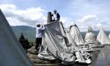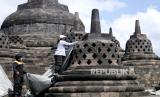 REPUBLIKA.CO.ID, MAGELANG -- Mengantisipasi peningkatan status Gunug Merapi Petugas Balai Konservasi Borobudur (BKB) menutup stupa dengan menggunakan terpal di Candi Borobudur, Magelang, Jawa Tengah.