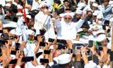 Ribuan simpatisan Imam Besar Front Pembela Islam (FPI) Habib Rizieq sudah memadati sepanjang jalan menuju Markaz Syariah Megamendung, Kabupaten Bogor, Jumat (13/11). (FOTO : Republika/Shabrina Zakaria)