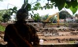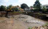 REPUBLIKA.CO.ID, JAKARTA -- Petugas dengan menggunakan alat berat mengeruk lumpur untuk memperlebar aliran Kali Krukut di kawasan Kemang, Jakarta, Jumat (13/11).