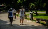 REPUBLIKA.CO.ID, JAKARTA -- Warga berolahraga di area Taman Lapangan Banteng, Jakarta, Ahad (15/11). Kawasan tersebut menjadi alternatif warga untuk berolahraga di akhir pekan selama Hari Bebas Kendaraan Bermotor (HBKB) dilarang pada masa PSBB transisi.