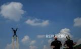 Warga berolahraga di area Taman Lapangan Banteng, Jakarta, Ahad (15/11). Kawasan tersebut menjadi alternatif warga untuk berolahraga di akhir pekan selama Hari Bebas Kendaraan Bermotor (HBKB) dilarang pada masa PSBB transisi. Republika/Thoudy Badai (FOTO : Republika/Thoudy Badai)