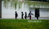 Warga beraktivitas di area Taman Lapangan Banteng, Jakarta, Ahad (15/11). Kawasan tersebut menjadi alternatif warga untuk berolahraga di akhir pekan selama Hari Bebas Kendaraan Bermotor (HBKB) dilarang pada masa PSBB transisi. (FOTO : Republika/Thoudy Badai)