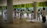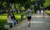 Warga berolahraga di area Taman Lapangan Banteng, Jakarta, Ahad (15/11). Kawasan tersebut menjadi alternatif warga untuk berolahraga di akhir pekan selama Hari Bebas Kendaraan Bermotor (HBKB) dilarang pada masa PSBB transisi. (FOTO : Republika/Thoudy Badai)