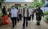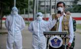REPUBLIKA.CO.ID, JAKARTA -- Ketua Satgas Penanganan Covid-19 Doni Monardo bersama Koordinator RSD Covid-19 Wisma Atlet Tugas Ratmono dan Staf Ahli Menteri Kesehatan Alexander Ginting menyampaikan keterangan pers di halaman Rumah Sakit Darurat Wisma Atlet, Jakarta, Ahad (15/11). Dalam konferensi pers tersebut Satgas Covid-19 bersama Ikatan Dokter Indonesia (IDI) mengimbau masyarakat untuk menerapkan protokol kesehatan serta mengurangi aktivitas yang menimbulkan kerumunan untuk menekan penyebaran covid-19. Ketua Satgas Penanganan Covid-19 sekaligus Kepala BNPB Letjen TNI Doni Monardo juga mengatakan, selama dua minggu terakhir angka kasus konfirmasi positif Covid-19 di Indonesia mengalami peningkatan yang berdampak pada keterisian ruang isolasi yang semula 32 persen saat ini naik menjadi 53 persen.