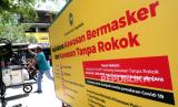 REPUBLIKA.CO.ID, YOGYAKARTA -- Baliho tanda larangan rokok dan wajib masker dipasang di jalur pedestrian Malioboro, Yogyakarta, Ahad (15/11).