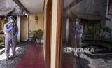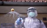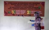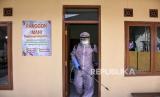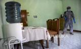 REPUBLIKA.CO.ID, BANDUNG -- Warga menyemprotkan cairan disinfektan di area ruang isolasi pasien Covid-19 di Jalan Bapa Ampi, Baros, Kota Cimahi, Ahad (15/11).