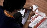 Pekerja melakukan pelipatan dan penyortiran surat suara di Gudang Logistik KPU Kabupaten Bandung, Kampung Sawah, Soreang, Kabupaten Bandung, Ahad (15/11). KPU Kabupaten Bandung mulai melakukan proses pelipatan dan penyortiran surat suara sebanyak 2.420.699 lembar dengan melibatkan 400 tenaga kerja lepas untuk pelaksanaan Pilkada Kabupaten Bandung 2020 pada Desember mendatang. (FOTO : ABDAN SYAKURA/REPUBLIKA)