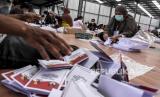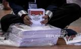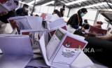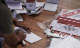 REPUBLIKA.CO.ID, BANDUNG -- Sejumlah pekerja melakukan pelipatan dan penyortiran surat suara di Gudang Logistik KPU Kabupaten Bandung, Kampung Sawah, Soreang, Kabupaten Bandung, Ahad (15/11).